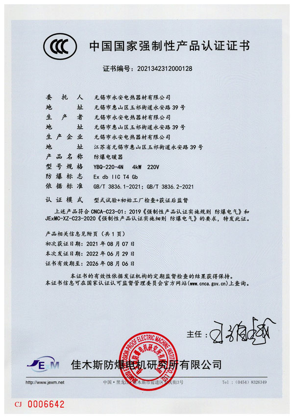 CCC证书-防爆电加热器