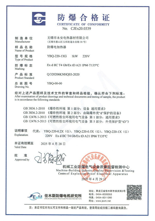 防爆证-防爆电加热器